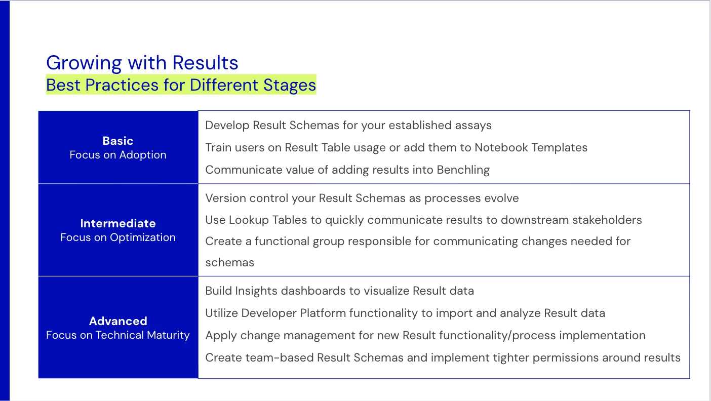 If you’ve ever struggled to get value out of Results in Benchling or figure out when you should be using them in the first place, this is the resource for you! We’ve broken down the key components of Results, where they should be added, and gathered some resources on the tactical aspects of setting them up.
